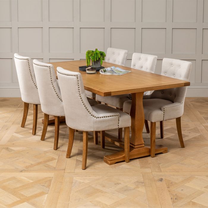Solid Oak Refectory 2m Dining Table And 6 Natural Fabric Scoop